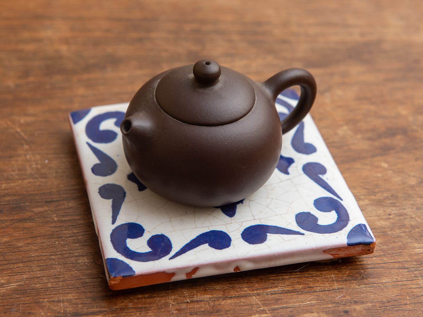 I need to make space on my teaware shelf, so it’s time for another teapot giveaway! To enter, “like” this post by clicking the heart icon by Thursday, December 18th. I’ll select a winner at random and contact them by email for shipping details. Please note you’ll have 48 hours to respond to my message before I move on to another randomly selected winner. I bought this mass produced pot in Singapore for about $40. It’s nothing special but it has a fast pour, good lid fit, and seems to do well with heicha. There’s a ceramic ball filter and the functional volume is approximately 70 milliliters, which is good for solo gong fu tea sessions.