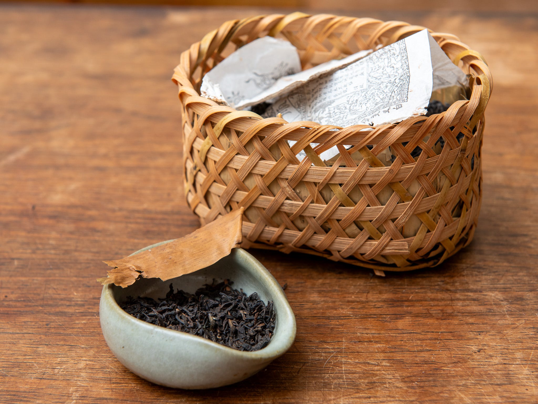 The source: Daniel Lui grew up in Hong Kong and drank aged tea at dim sum almost every week. He opened The Chinese Tea Shop in Vancouver in 2002 and stocked his shelves with Hong Kong favorites that could age well, with the rationale that if he struggled to get customers at first, at least he’d have a good collection of tea to drink and sell in the future. But business took off with Vancouver’s Chinese immigrant community. Older customers became teachers and sources of rare aged teas from their personal collections, which is how Lui acquired some liu an baskets dating back to the 1960s. This 2005 basket was made by the Sun Yi Shun factory, which is the largest brand in the tea’s historic home of Qimen county in Anhui.