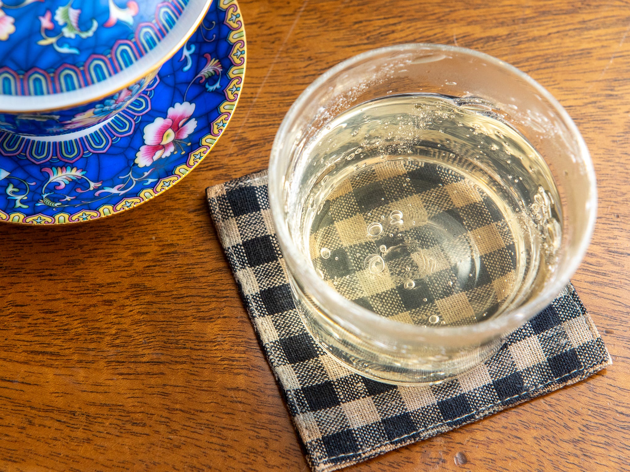 To brew: Harmony tastes clean and bright with abundant white flower aromas. This batch is on the greener side of white teas, with a slightly spicy garden vegetable impression from the wet leaves. There’s a nice finishing sweetness carried by a moderate body that reminds me of chewing softened marshmallow. It feels like clean linens drying on laundry lines in summertime. To get this brew, I used 3 grams in a 150 milliliter pot (1g/50ml) with water that I cooled by repeated decanting. I poured boiling water into a cup, which reduced its temperature to 200°F (93°C). Then I dribbled the water from the cup into my pot, which brought the temperature down further to 180°. After 1 minute of steeping with the lid off, the water bottomed out at 155°. You can see how quickly water temperature drops during brewing. In the case of a delicate white tea, thermodynamics work in our favor.
